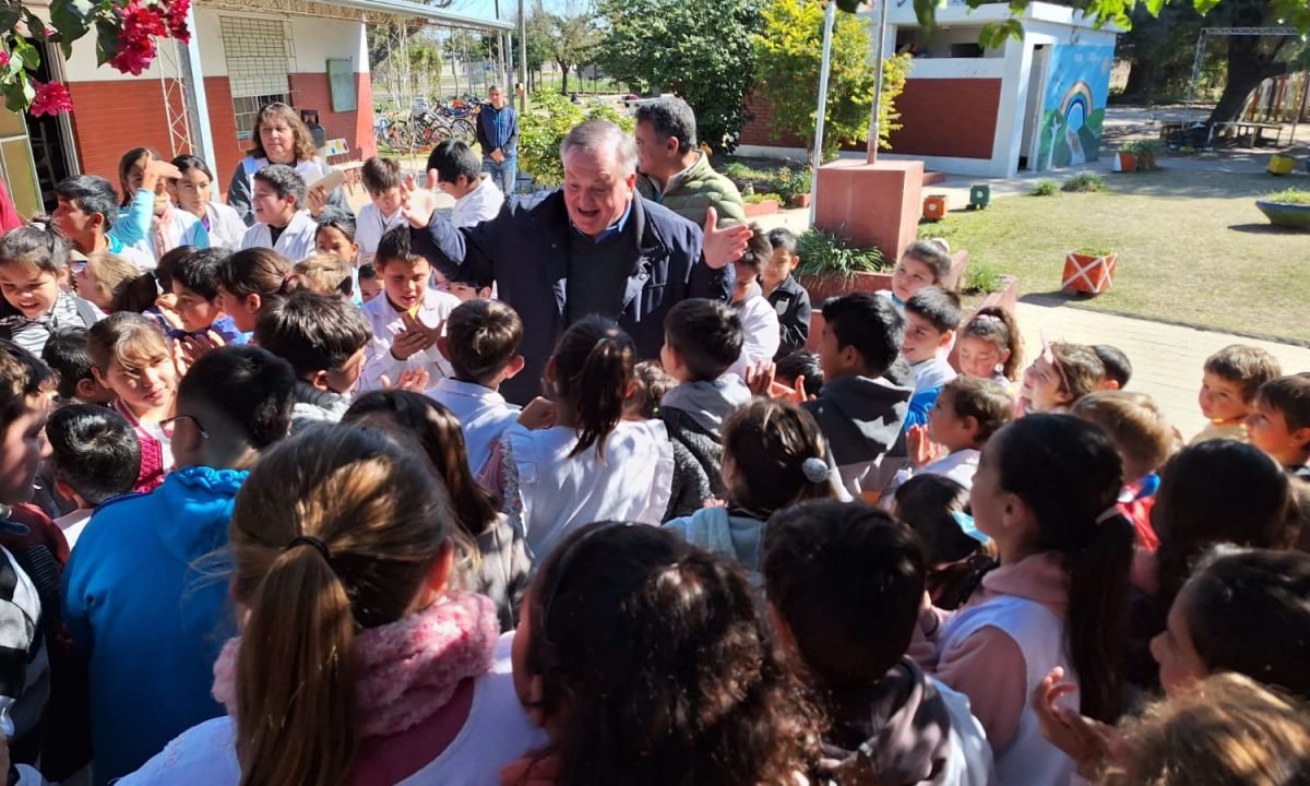 En la ocasión compartieron un pequeño acto en el patio de la escuela junto a los alumnos del nivel inicial y el nivel primario donde entregaron una bandera de flameo y un aporte económico para la compra de libros de literatura infantil. Además, el senador anunció que se va a hacer la compra de juegos infantiles para la escuela.