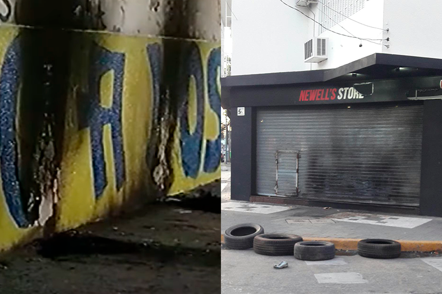 Por su parte, en Mendoza al 3500 arruinaron la fachada de un local que vende indumentaria de Newell’s.