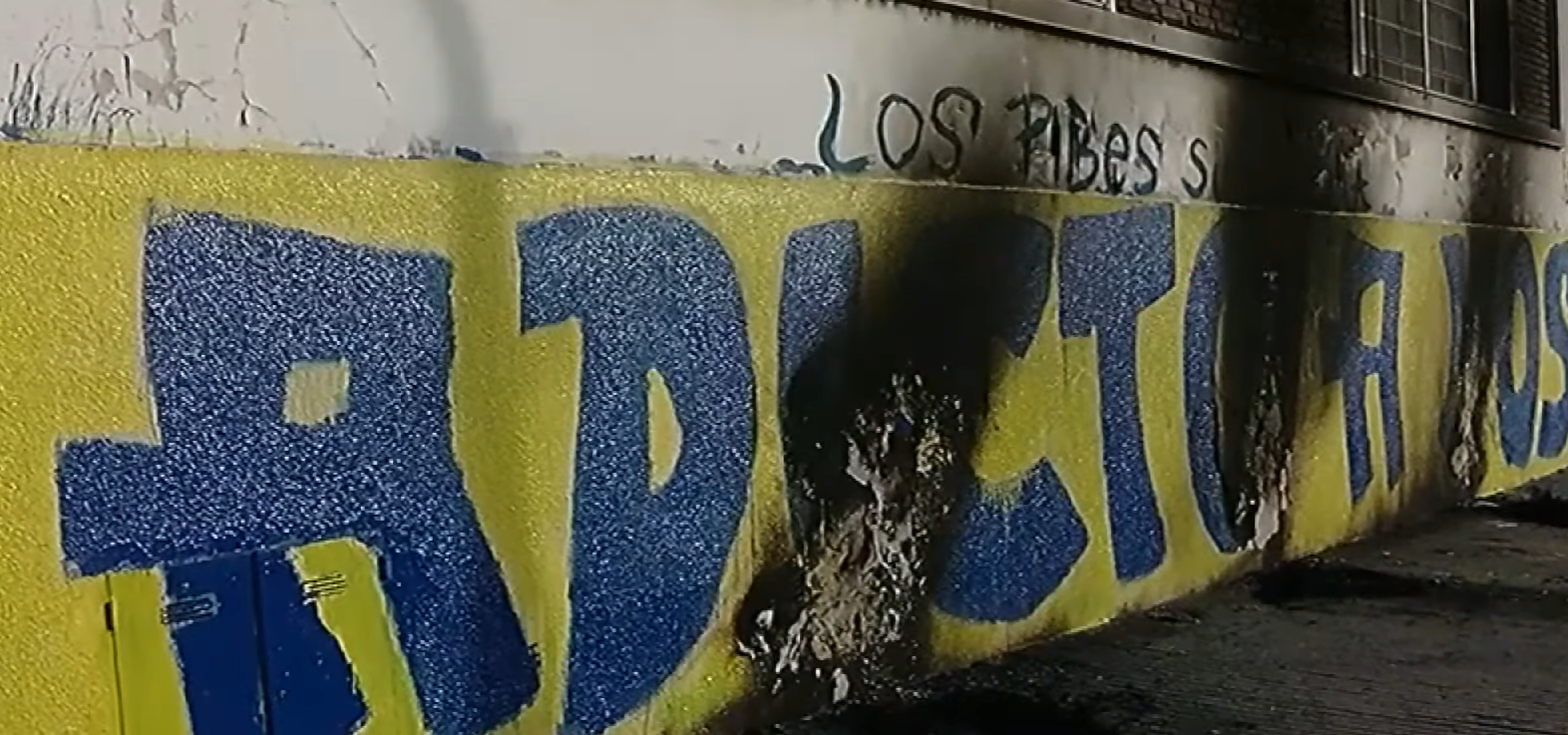 Con la misma mecánica de colocar gomas junto a las paredes e incendiarlas, durante la madrugada en Avellaneda al 300 bis, a unas 12 cuadras del Gigante de Arroyito, atacaron una pintada canalla.