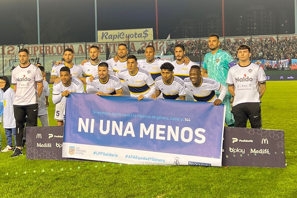En la previa de conocer su veredicto, el equipo de Boca posó con una bandera de Ni Una Menos en el encuentro ante Arsenal de Sarandí. En la misma, aparece Sebastián Villa.