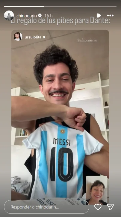 Además, la actriz mostró una captura de una videollamada con su pareja, el recurso que ambos utilizan para mantenerse cerca a pesar de la distancia. En esa imagen, Darín le enseñaba a través de la pantalla un regalo muy especial que recibió el pequeño: una mini camiseta de la Selección Argentina con el número 10 de Lionel Messi, obsequio de “los pibes”, según detalló con humor.