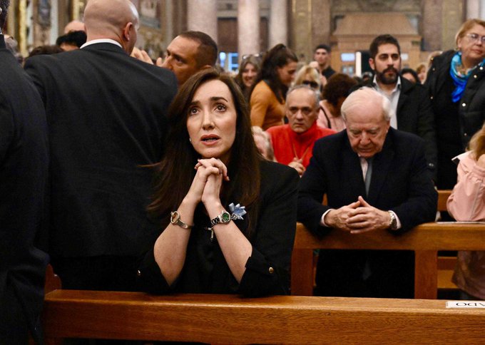 La vicepresidenta Victoria Villaruel fue abucheada e insultada a la salida de la misa en homenaje al Papa Francisco, que se desarrolló esta tarde en la Basílica de San José de Flores.