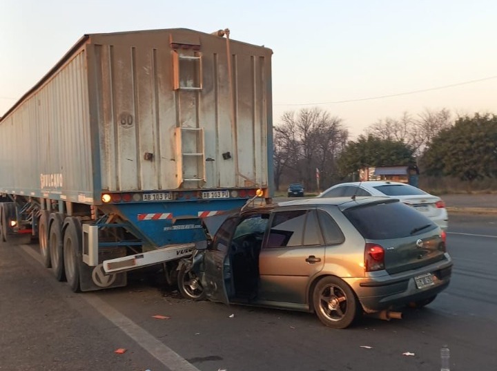 El camionero giró en U pero luego de una mala maniobra impactó contra una columna, por lo que tuvo que frenar en seco. Como consecuencia, un automóvil se incrustó en la parte trasera del rodado de mayor porte. Dentro del vehículo se encontraban cinco personas, que resultaron con heridas leves y fueron traslados al hospital escuela de Granadero Baigorria.