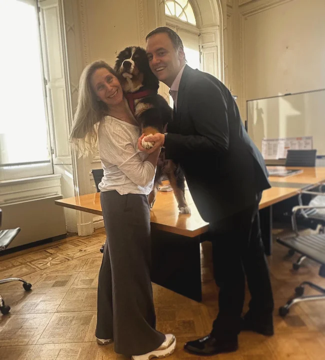 Si bien no se dieron mayores detalles, todo indica que el perro, de raza Boyero de Berna, pasará sus jornadas en algún sector de la Casa de Gobierno.