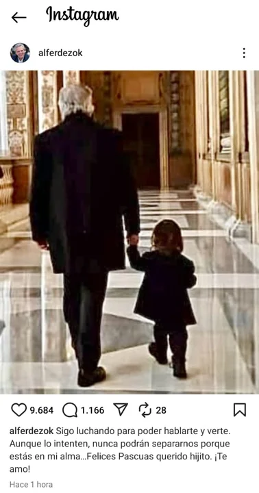 El expresidente Alberto Fernández compartió este domingo de Pascua un mensaje íntimo dirigido a su hijo en su cuenta de Instagram (@alferdezok). Junto a una fotografía familiar, el exmandatario escribió: “Sigo luchando para poder hablarte y verte. Aunque lo intenten, nunca podrán separarnos porque estás en mi alma… Felices Pascuas querido hijito. ¡Te amo!“.