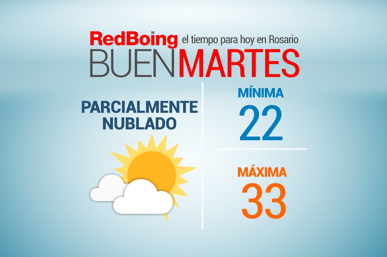 El Servicio Meteorológico Nacional informó que este martes en la ciudad de Rosario será un día soleado con algunas nubes. Habrá una mínima de 22º y máxima de 33º. Por la mañana se espera una media de 26º y hacia el mediodía unos 29º.