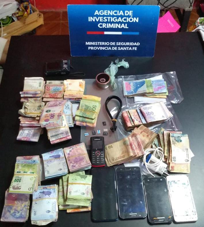 Por otra parte, los efectivos de la Agencia de Investigación Criminal secuestraron teléfonos celulares, gran cantidad de dinero en efectivo, precintos y una picadora manual con restos de marihuana.