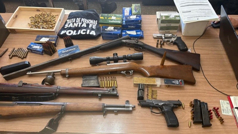 Durante los operativos se secuestró un importante arsenal compuesto por dos pistolas, un revólver, una escopeta, una carabina y dos fusiles, además de una gran cantidad de municiones de distintos calibres, entre ellas 316 cartuchos calibre 9 mm, 528 calibre .22, 57 calibre 16, 54 calibre .44, 76 calibre .308, 94 calibre .45, 69 calibre .30-06 y otras variantes. También se incautaron vainas servidas y teléfonos celulares que serán analizados como parte de la causa.