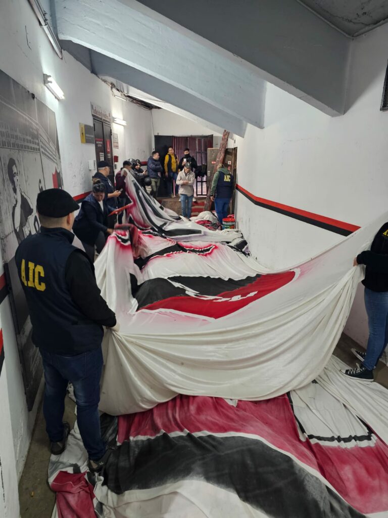 A pesar de que las autoridades policiales accedieron a una pieza dentro del Coloso que alberga a las banderas que suele desplegar la barrabrava en los partidos, no pudieron dar con la que fueron a buscar.