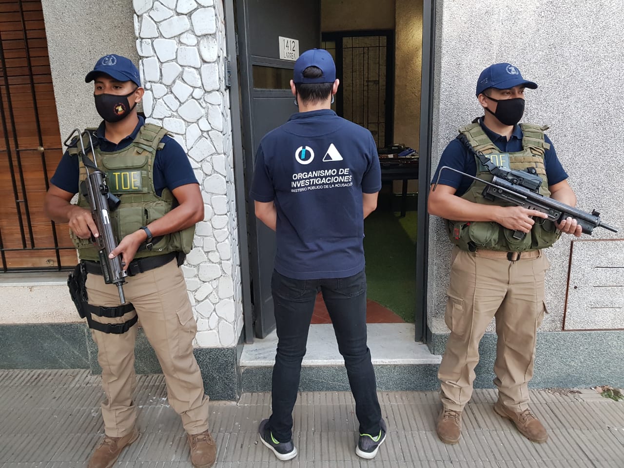 Este sábado, el Organismo de Investigaciones acompañado por la Tropa de Operaciones especiales y el Grupo de Operación Táctica realizaron, por decisión del Fiscal interviniente, allanamientos a siete domicilios, dos de los cuales se correspondieron a una única propiedad, de grandes dimensiones, perteneciente a un ex jefe de policial de provincia, funcionarios policiales de altas jerarquías y civiles cuya función habría sido la prestación de servicios de modo irregular
