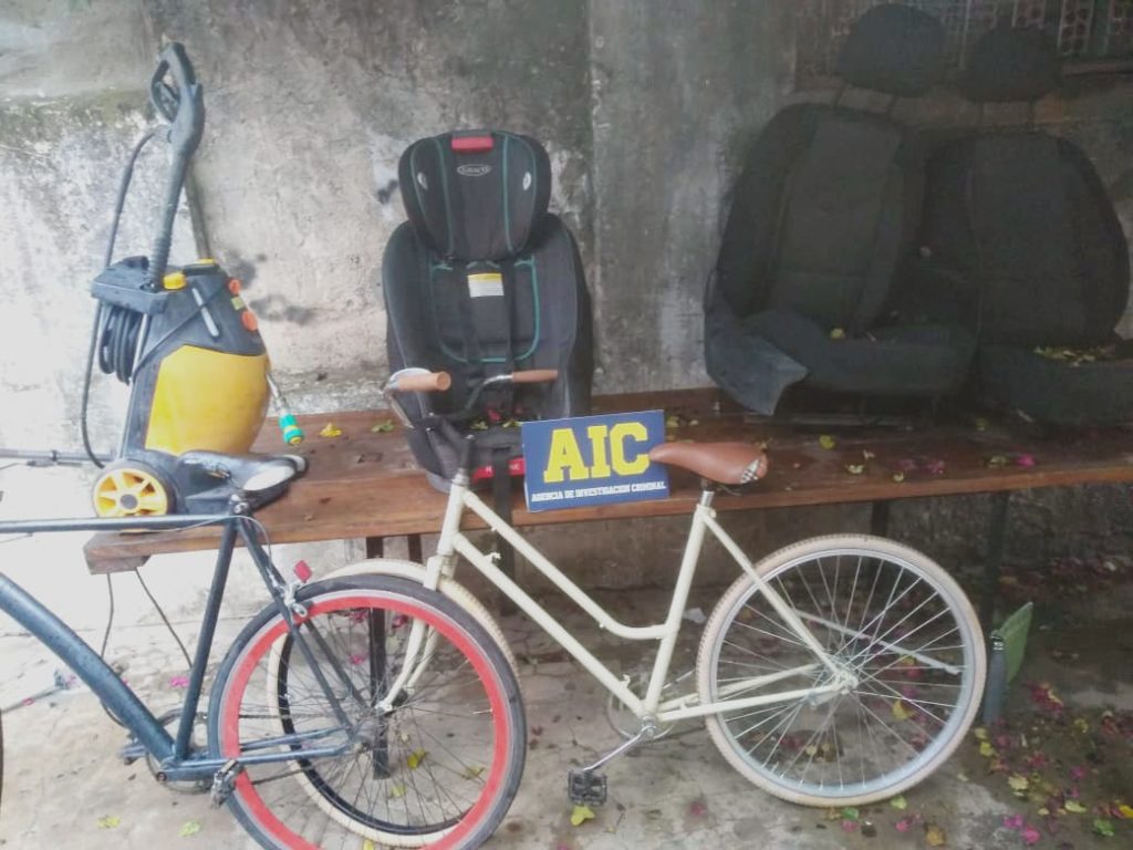 Dentro de los elementos secuestrados se encuentran dos teléfonos celulares, una notebook, cuatro butacas, dos llantas con cubierta, 16 cubiertas de diferentes rodados, una planchita de pelo, dos baterías de auto, un anafe eléctrico, una hidrolavadora y una licuadora.