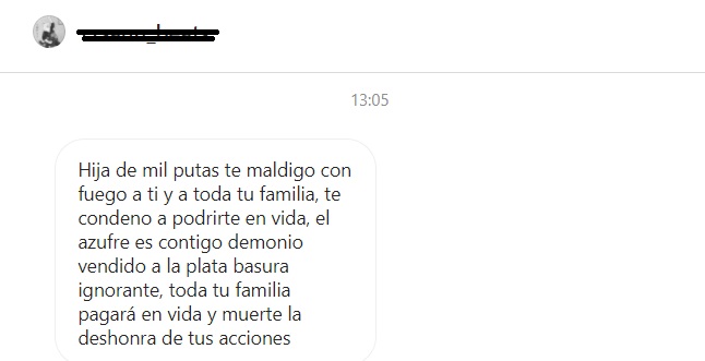 Entre los escritos puede leerse “si te veo te juro que te rompo todo lo que se pueda“; “habrá consecuencias”; “Hija de una gran pu…se vienen los códigos de Nuremberg“; “vamos a hacer cumplir la profecía de Don Orine”; y una serie de amenazas e insultos hacia ella y su familia.