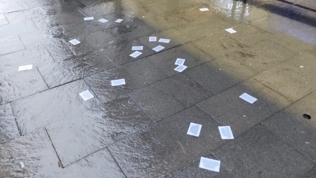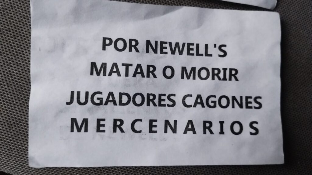 En las hojas impresas se puede leer el texto: “Por Newell’s, matar o morir”. Muchos de estas hojas se pudieron ver en Córdoba y Corrientes, en plena peatonal. “Jugadores cagones, mercenarios”, decía otra frase.