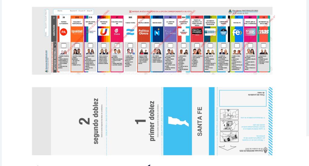Será la primera vez que en Santa Fe se utilice la Boleta Única de Papel en elecciones nacionales. El formato incluye todas las opciones partidarias en un solo papel, en el que el votante debe marcar con una cruz o tilde su preferencia.