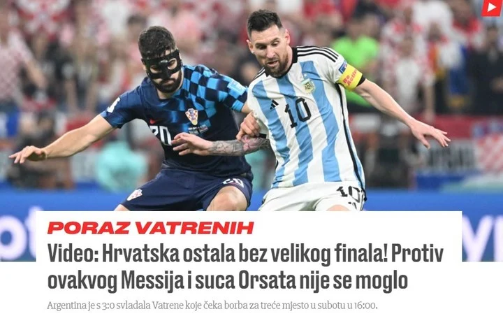 “Croacia se quedó sin una gran final: era imposible enfrentarse a este tipo de Messi y el árbitro Orsat”, lamentó el medio croata Jutarnji list luego de quedar eliminados. Por otro lado, apuntaron contra el árbitro por la derrota, aunque admitieron el gran desempeño del 10 argentino. El país ahora deberá jugar por el tercer puesto el próximo sábado a la espera de Marruecos o Francia.