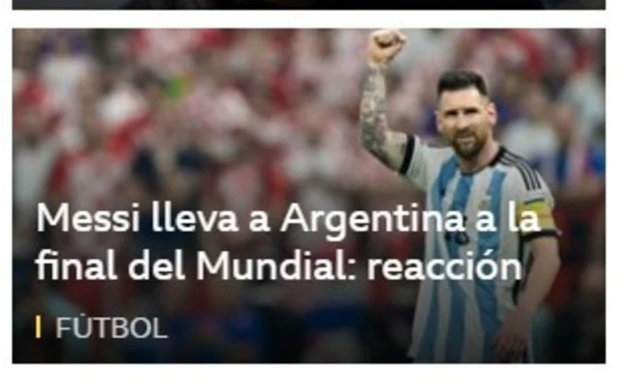 En la BBC titularon: “Messi lleva a Argentina a la final del Mundial”.