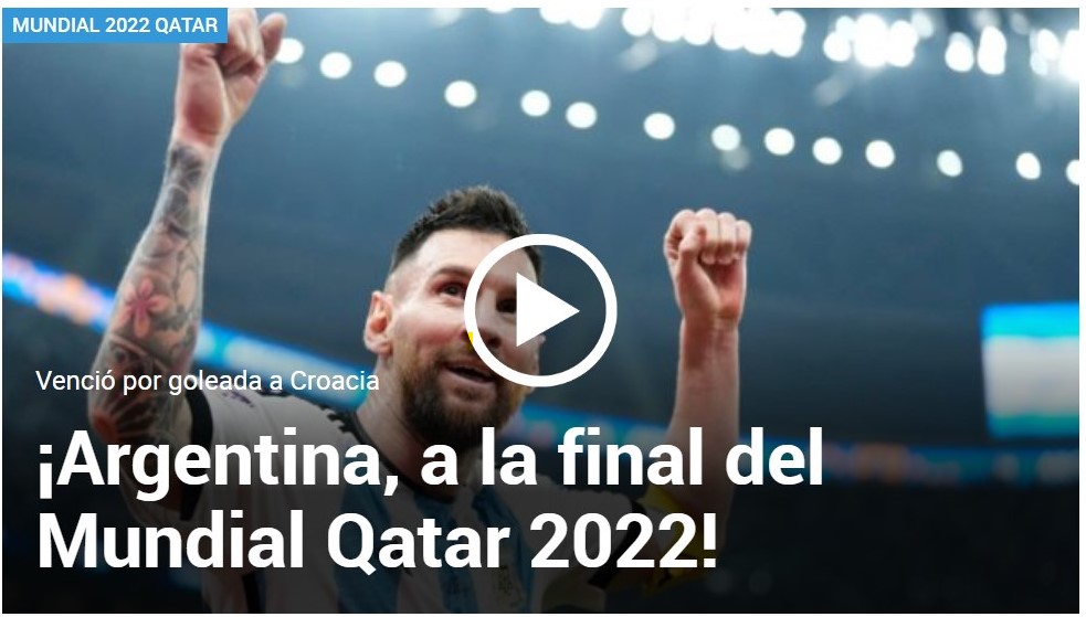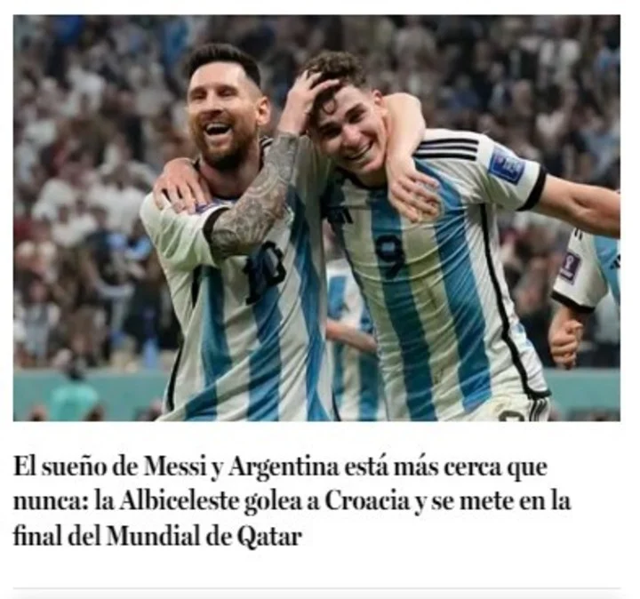 El País, de Uruguay, señaló: “El equipo de Messi es el primer finalista del Mundial de Qatar 2022”.