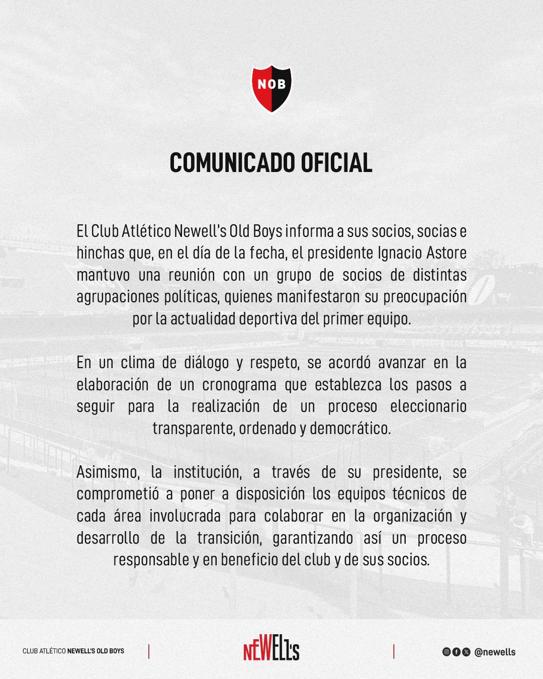 Por último, el comunicado señala que el presidente “se comprometió a poner a disposición los equipos técnicos de cada área involucrada para colaborar en la organización y desarrollo de la transición, garantizando así un proceso responsable y en beneficio del club y de sus socios”.