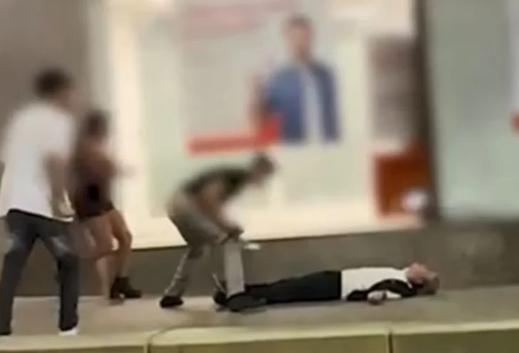 En ese momento, uno de los atacantes, que vestía remera negra, levantó lo que parecía ser una pertenencia que se encontraba cerca de los pies de la víctima y se retiró junto al resto de los agresores.