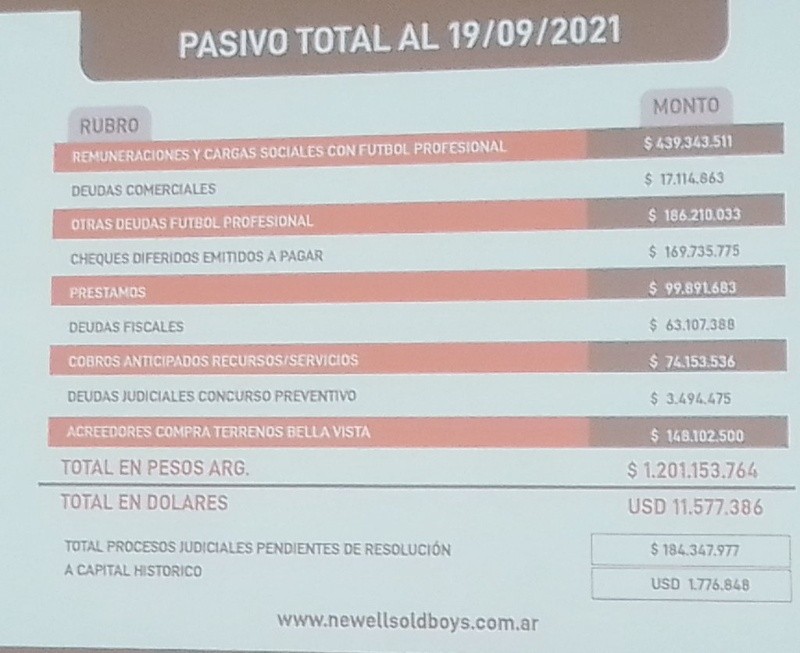 Los directivos que estuvieron a cargo de la comunicación explicaron que el pasivo total que recibió la actual dirigencia por parte de Cristian D’Amico es de 11.577.386 dólares. En ese sentido, Cardozo expresó: “Habrá una segunda etapa que será un análisis del pasivo. Es más alto que el generado por Eduardo López”.