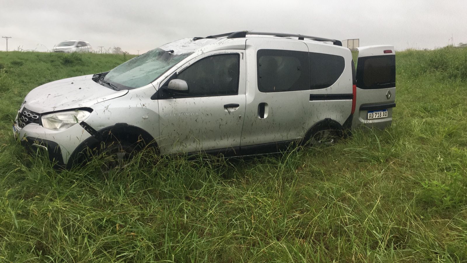 El primero de ellos ocurrió en el kilómetro 317, frente a la estación de servicios Puma: un Peugeot 207 con tres ocupantes a bordo despistó y luego volcó. El conductor presentó un corte en su rodilla derecha producto del golpe.