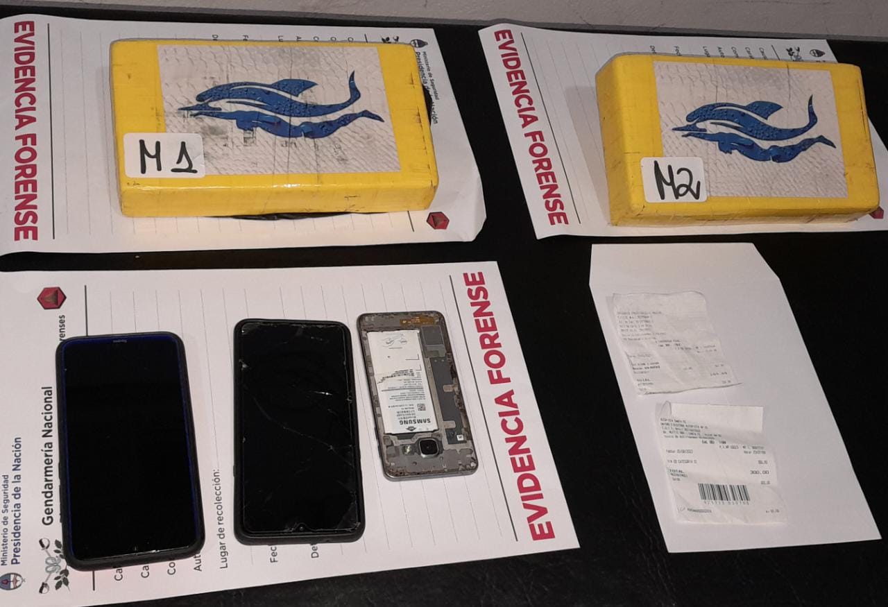 La pareja que resultó detenida circulaba en un Chevrolet Corsa y quien manejaba era la mujer, de nacionalidad dominicana. El hombre, por su perte, es argentino. Abajo de su butaca, había dos paquetes envueltos en cinta armarilla, que adentro tenían 2.128,07 gramos de cocaína.