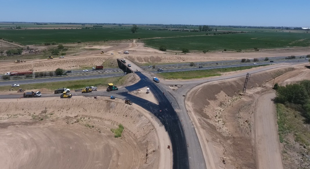 Entre las tareas, se finalizó la construcción de 75 mil metros cúbicos de terraplenes y se realizó la conformación de la base de asiento en las cuatro ramas luego del desmonte, retiro de vegetación y alambrados. Sobre los terraplenes, se formaron capas estructurales de suelo, cal, arena y escoria y una carpeta superior de rodamiento, compuesta de concreto asfáltico modificado con polímeros.
