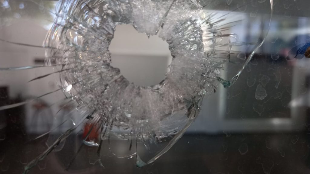Las autoridades detectaron el ataque en la zona del gimnasio, donde dieron con un tiro en la pared y al menos ocho contra los vidrios, los cuales llegaron hasta la zona de la pileta a unos 50 metros del ingreso.