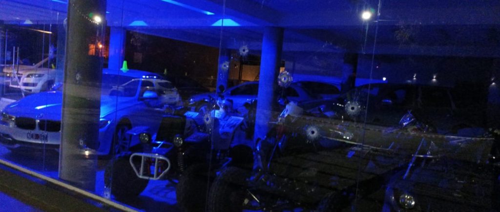 El incidente fue denunciado por los vecinos, quienes se sorprendieron al escuchar los balazos y luego vieron que había más de 10 disparados contra la vidriera de “Gaetano Automotores” ubicado en Hipólito Yrigoyen al 2700.