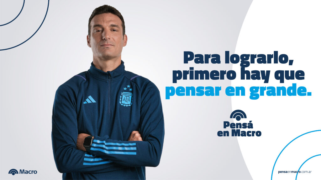 “En las primeras conversaciones con Scaloni le comentamos nuestra idea de invitar a los argentinos a pensar en grande. El optimismo es una característica de este comercial de Banco Macro que tiene a Scaloni como protagonista. Y ese optimismo esperanzador que intentamos mostrar desde el guión resume la intención de llevar a la Argentina a pensar en grande, pensar en Macro”, señaló Brian Anthony, Gerente de Bancas Comerciales de Banco Macro.