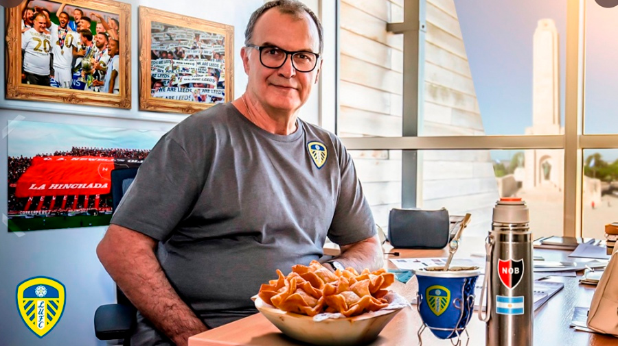 Marcelo Bielsa apareció este miércoles en una imagen recreada por Leeds United, el equipo que dirige, con un mate, pastelitos y un termo donde se ve el escudo de Newell’s Old Boys y la bandera argentina a modo de celebración del Día de la Tradición.