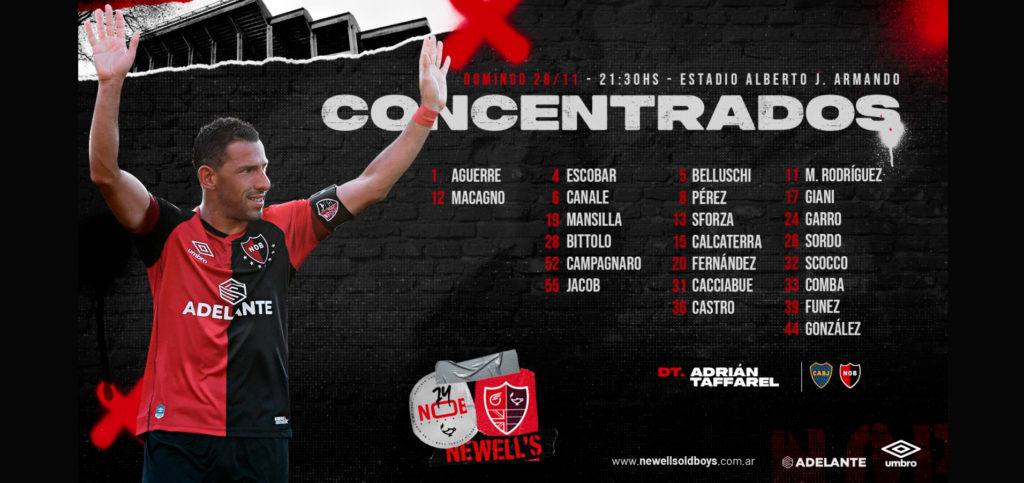 En la tarde del sábado, el entrenador de Newell’s, Adrián Taffarel confirmó la lista de citados para visitar a Boca por la antepenúltima jornada del certamen argentino. Maxi Rodríguez integra la lista de convocados luego de las dudas que surgieron a partir del video donde anunció su retiro del fútbol profesional.