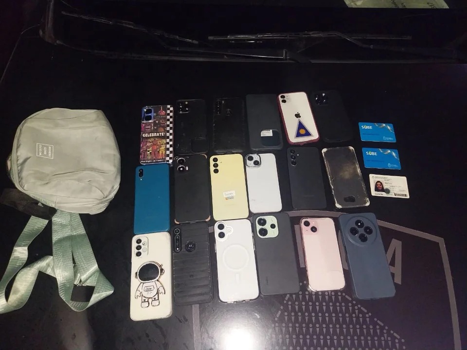Durante el control, los uniformados encontraron en su poder un total de 18 dispositivos móviles: seis iPhone, tres Xiaomi, cinco Samsung, tres Motorola y un Infinix. Todos los equipos fueron secuestrados como parte de la causa.