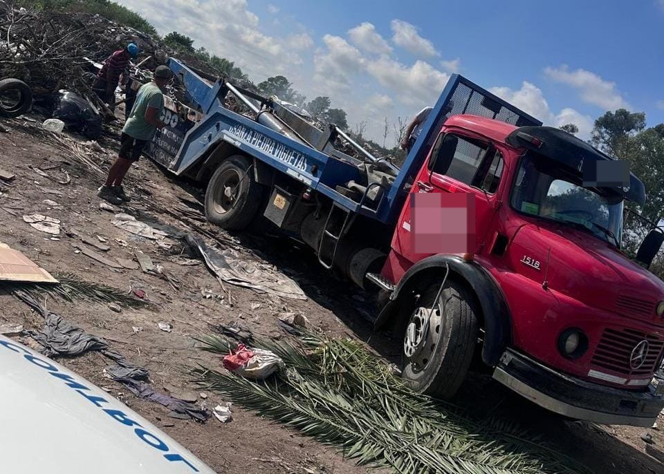 El hecho ocurrió en el sector de 5 de Agosto y calle 530, donde el camión descargaba restos de poda de árboles y bolsones con residuos. La intervención se produjo en el momento exacto en que los conductores intentaban concretar la infracción, lo que permitió actuar de manera sorpresiva y evitar que los desechos quedaran dispuestos en el espacio público.
