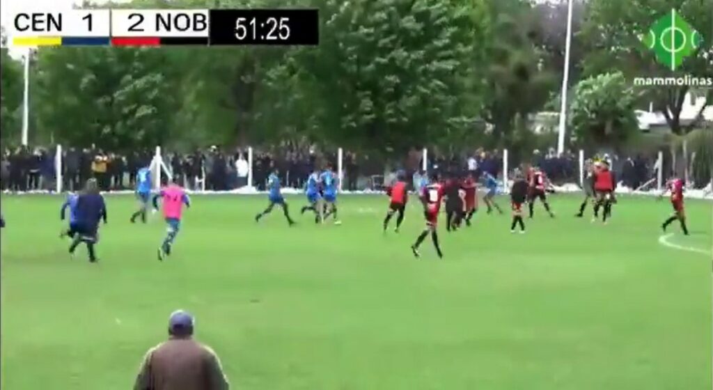 Sin embargo, el protagonismo se lo llevó el lamentable hecho que ocurrió al finalizar el encuentro. Los jugadores de ambos equipos se cruzaron en una verdadera batalla campal que tuvo absolutamente de todo.
