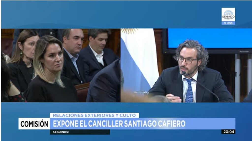 Santiago Cafiero visitó la Comisión de Relaciones Exteriores del Senado para hacer un informe sobre la política de la Cancillería que lidera, y en el ida y vuelta con los legisladores recibió una chicana por el uso del idioma inglés por parte de la rosarina y radical Carolina Losada.