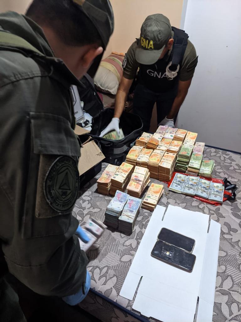 Ante estos hechos, los funcionarios allanaron las propiedades, donde detuvieron a los 16 miembros de la banda y decomisaron dosis y plantas de marihuana, 43 armas de fuego, municiones, cargadores, una suma millonaria de dinero, 33 teléfonos celulares, dispositivos de almacenamiento y vigilancia. Asimismo, el personal de la fuerza incautó 23 rodados (entre camionetas, automóviles y motos) y documentación importante para la investigación. Una de las inspecciones fue en una sucursal bancaria, en donde el contador de la organización delictiva poseía cajas de seguridad.