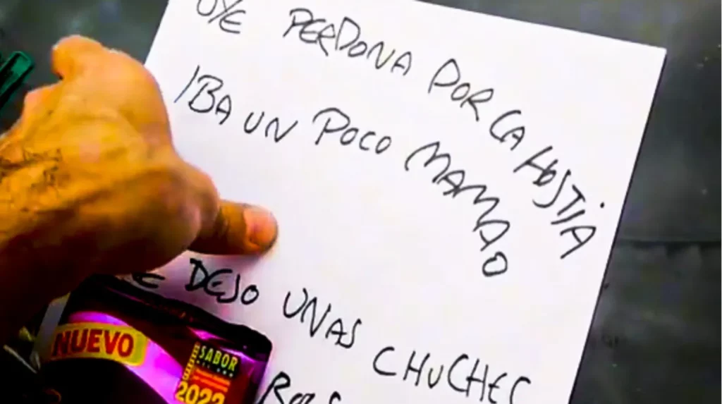 El usuario de TikTok @sirjeyx decidió grabar la ¿tierna? disculpa y leer el mensaje que le dejó con el número de teléfono junto a unos dulces. “Perdona, iba un poco mamao”, confesó en la nota.