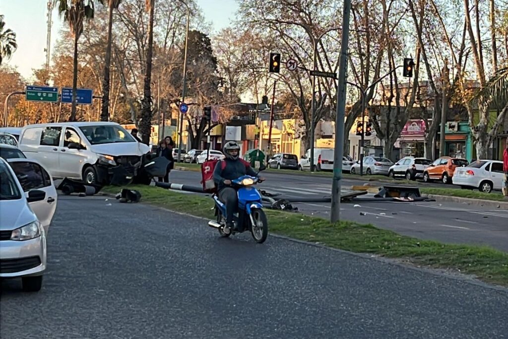 Un utilitario protagonizó un siniestro vial este jueves en la intersección de Washington y bulevar Rondeau, cuando, por causas que se investigan, impactó contra un semáforo.