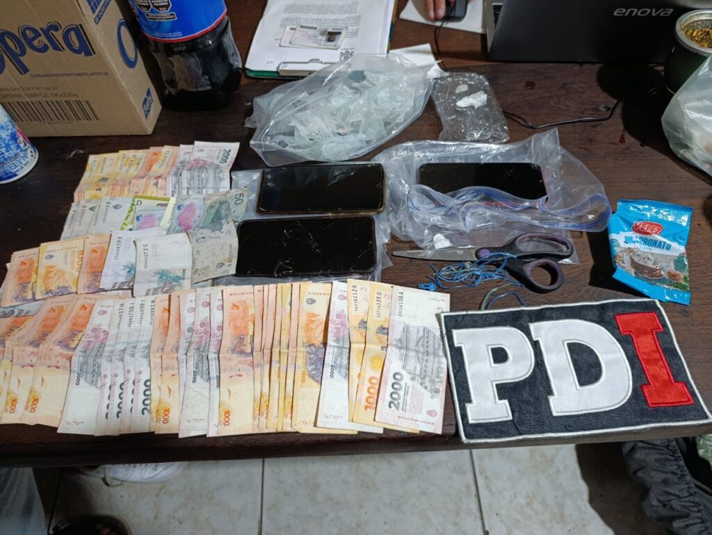 Durante los operativos, los agentes secuestraron siete teléfonos celulares, $215.900 en efectivo, siete envoltorios de presunta cocaína —que arrojaron resultado positivo en el reactivo químico—, un arma de fuego tipo pistolón calibre 28, cuatro cartuchos intactos (calibres 28 y 14½), recortes y precintos, además de una tijera y una cuchara con vestigios de estupefacientes. También se incautó un arma de aire comprimido similar a una réplica.