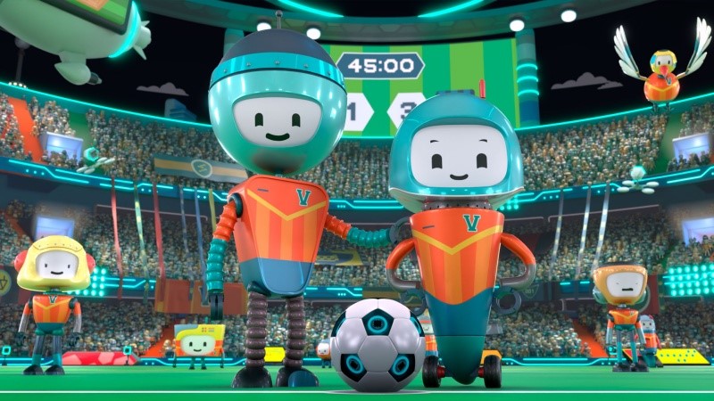 También en el caso de Robotia una historia más extendida y ambiciosa reclama más complejidad. Se nota el esfuerzo de los animadores, que llevan adelante con esmero el exigente armado de escenarios enormes con muchos elementos simultáneos activos, como el de una cancha de fútbol. Pero el desafío aparece demasiado grande para una historia que sigue aferrada en términos conceptuales al formato más corto y la pantalla más acotada.
