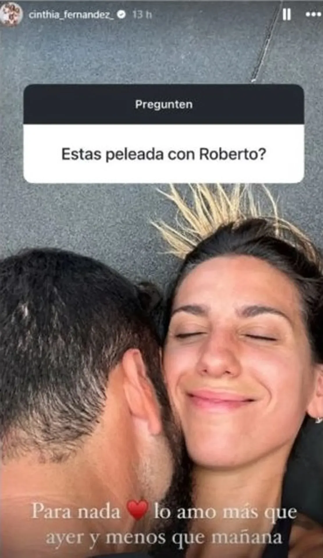 “La verdad, mostré poco porque estaba preocupada por mi quiste y además, tengo mucho trabajo”, confió de entrada Fernández ya mucho más aliviada y, ante la consulta concreta por su noviazgo, Cinthia aclaró directa: “No estoy peleada para nada. Lo amo más que ayer y menos que mañana”.