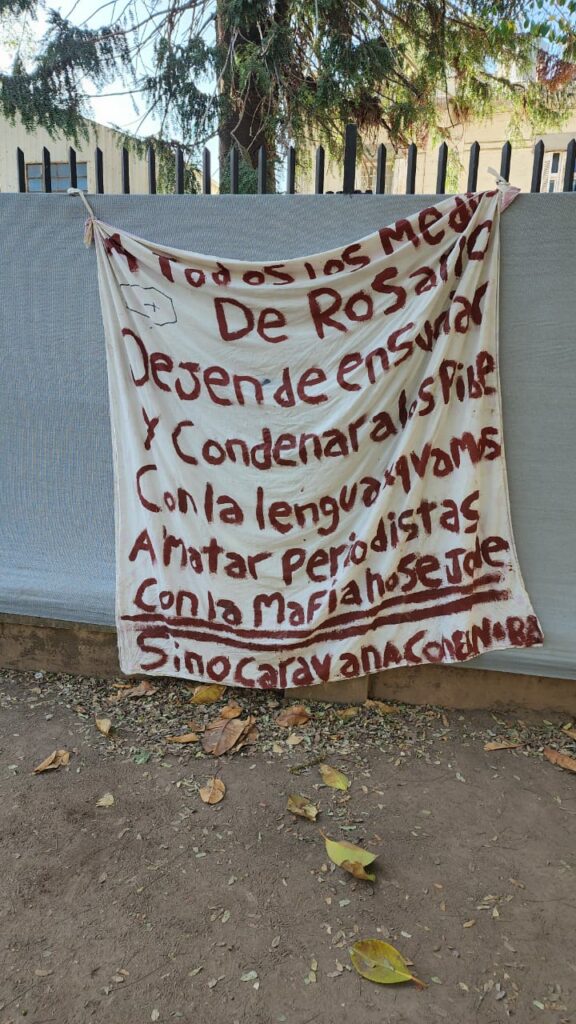 “A todos los periodistas de Rosario, dejen de ensuciar y condenar a los pibes con la lengua xq vamos a matar a periodistas. Con la mafia no se jode. Si no de caravana con el Noba”, rezaba el trapo.