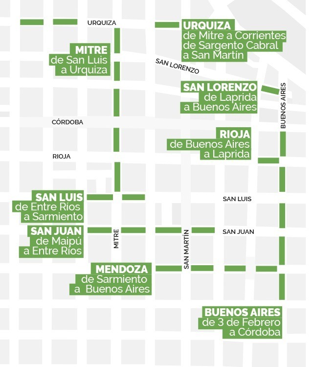 Una particularidad es que en el tramo de la cortada Ricardone, entre calles Corrientes y Mitre, está contemplado habilitar el estacionamiento paralelo al cordón en ambas manos.