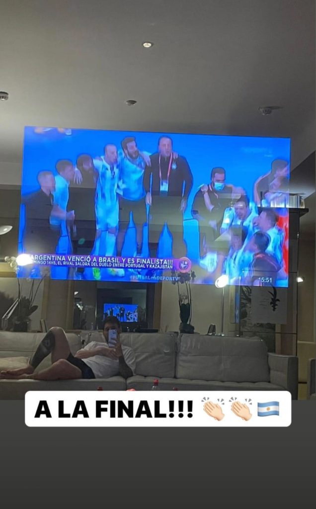 La familia Messi se fotografió mirando el seleccionado argentino de futsal que logró el pase a semifinales del Mundial en Lituania tras la serie de penales ante Rusia en la semana pasada. Luego del empate 1 a 1 en el tiempo reglamentario, y la dramática victoria, uno de los que festejó fue Lionel Messi desde Francia. El campeón de América compartió una historia junto a su familia y dejó un detalle en redes sociales.
