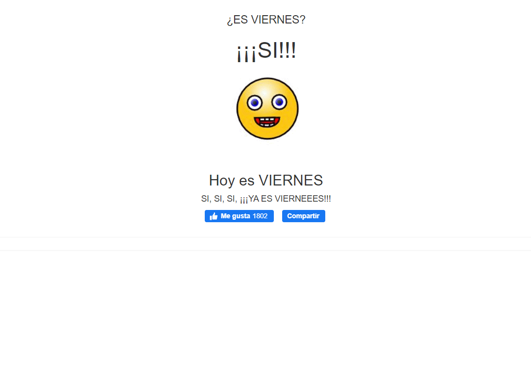 Por eso, internet ha planteado varias soluciones, ya que ir a un calendario es muy siglo XX. Por ejemplo, el sitio web https://www.esviernes.com/, permite una respuesta automática, con un “¡SI!”, o la contraria en caso de haber supuesto que la semana se terminaba antes de tiempo.