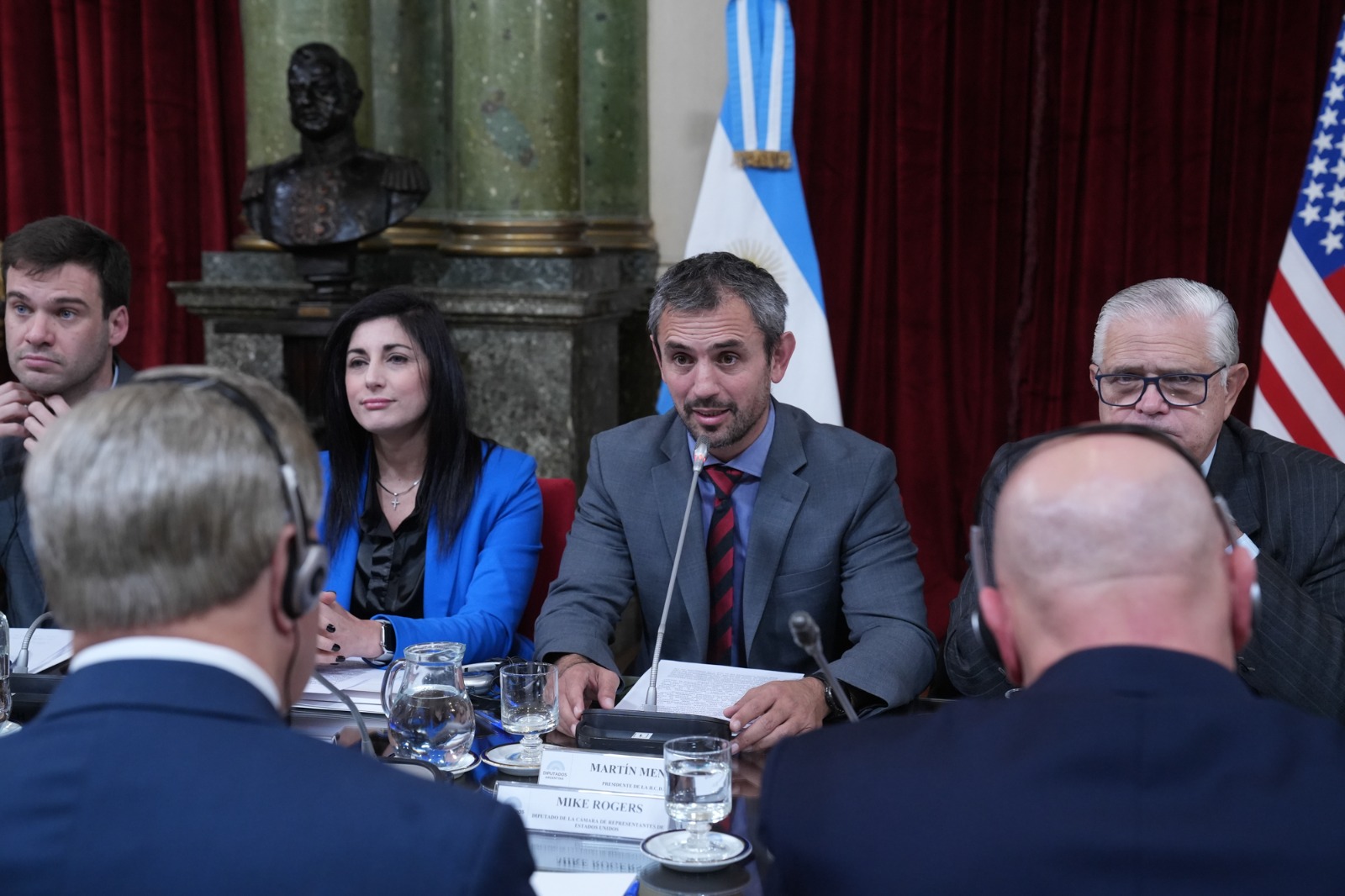 El presidente de la Cámara de Diputados, Martin Menem mantuvo una reunión con una delegación de parlamentarios de la Cámara de Representantes de Estados Unidos encabezada por el presidente de la Comisión de Servicios Armados, Mike Rogers.