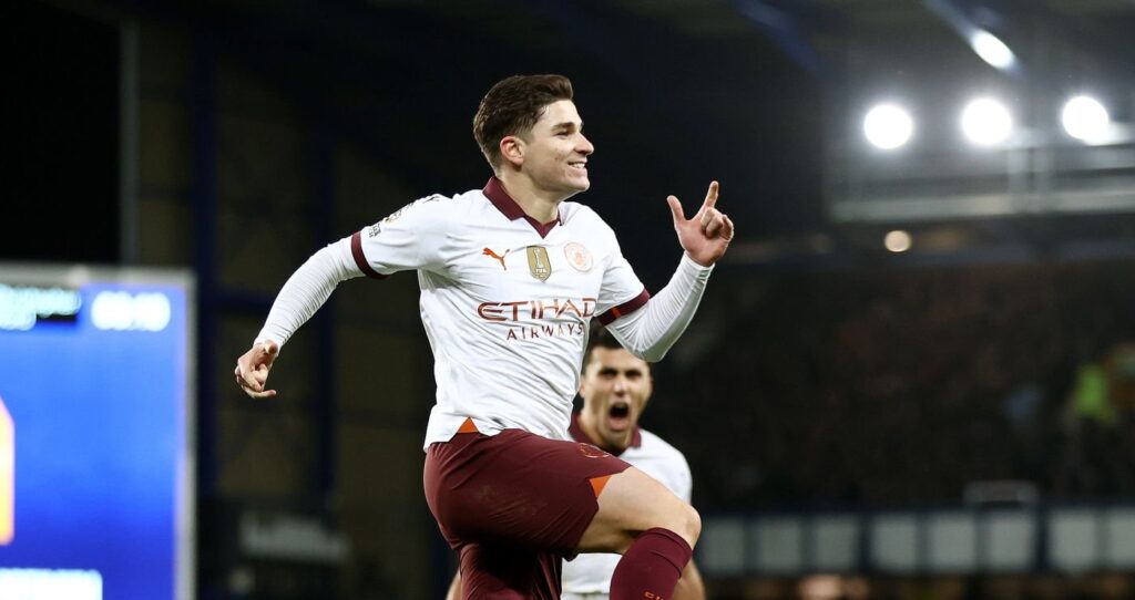 Julián Álvarez marcó su tercer gol en dos partidos con la camiseta de Manchester City al cambiar su penal por el tanto que concreta la remontada del equipo de Pep Guardiola en su visita a Everton en Goodison Park en el marco de la fecha 19 de la Premier League 2023/24.