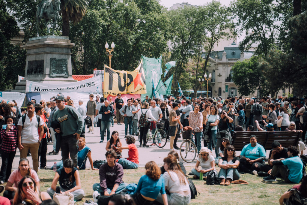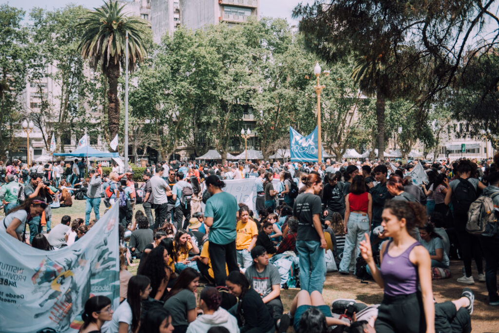 En estos momentos se está llevando a cabo un paro docente, concentración y transmisión en vivo de la sesión de la Cámara de Diputados de la Nación en repudio al veto de Milei y exigiendo a legisladores que ratifiquen la Ley de Financiamiento Universitario.