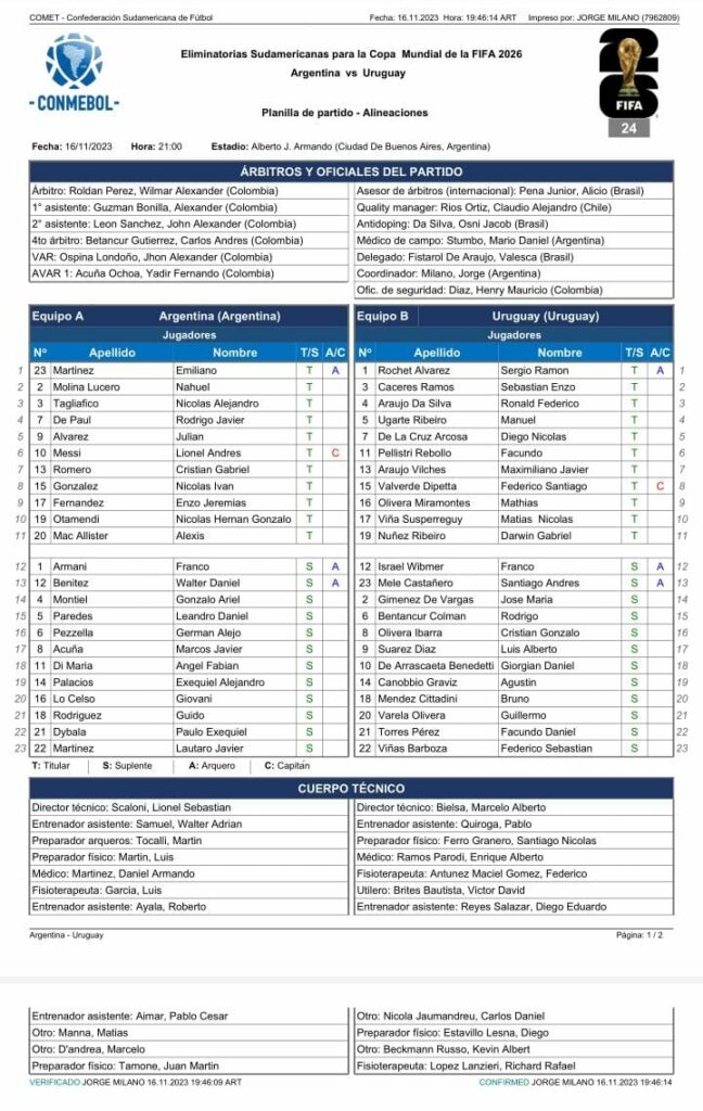 No obstante, todo parece indicar que el Fideo verá una gran cantidad de minutos ante el combinado charrúa. Asimismo es un hecho la presencia de Lionel Messi desde el arranque.
